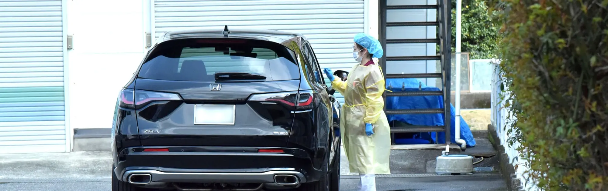 検査方法は症状や状況に応じて決定します。お車内または専用検査スペースで実施します。